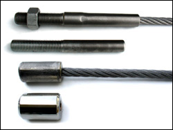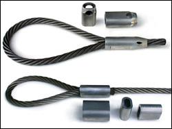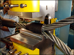 單套頭油壓壓縮接合:將鋼索同心插入套頭內,以油壓機壓縮緊密接合,其 接合效率約可達100%。