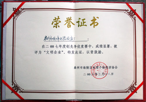 本單位生產的產品通過質量監督局檢驗合格并頒發了合格證書。(點擊可放大)